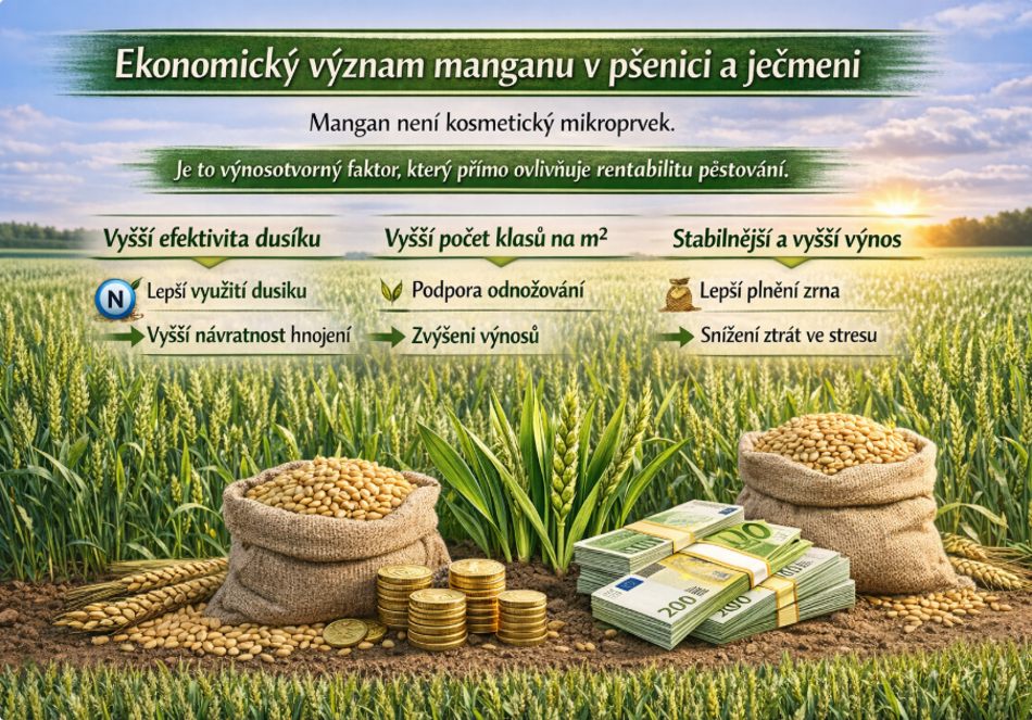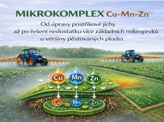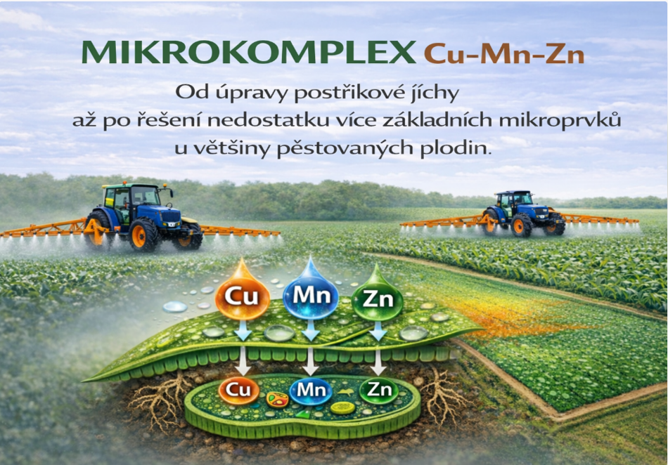 Druhou složkou je MIKROKOMPLEX Cu-Mn-Zn, který doplňuje klíčové mikroprvky důležité pro fyziologické procesy v rostlině.
