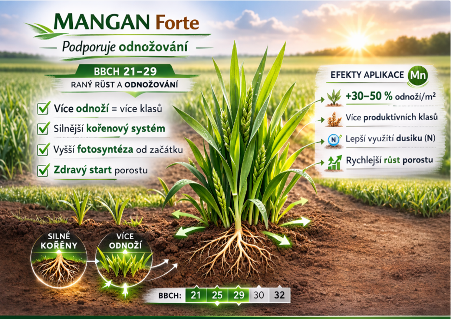 Porosty ozimé řepky v současné době vstupují do fáze intenzivního jarního růstu. Rostliny rychle zvětšují listovou plochu. V tomto období výrazně roste potřeba živin, především dusíku a dalších prvků, které podporují metabolismus rostlin a tvorbu biomasy. Vedle základního půdního hnojení je proto důležité doplnit výživu také mimokořenovou aplikací. V praxi se v této fázi osvědčuje kombinace listových hnojiv LOVOSUR, MIKROKOMPLEX Cu-Mn-Zn a hnojiva LOVOFOS.