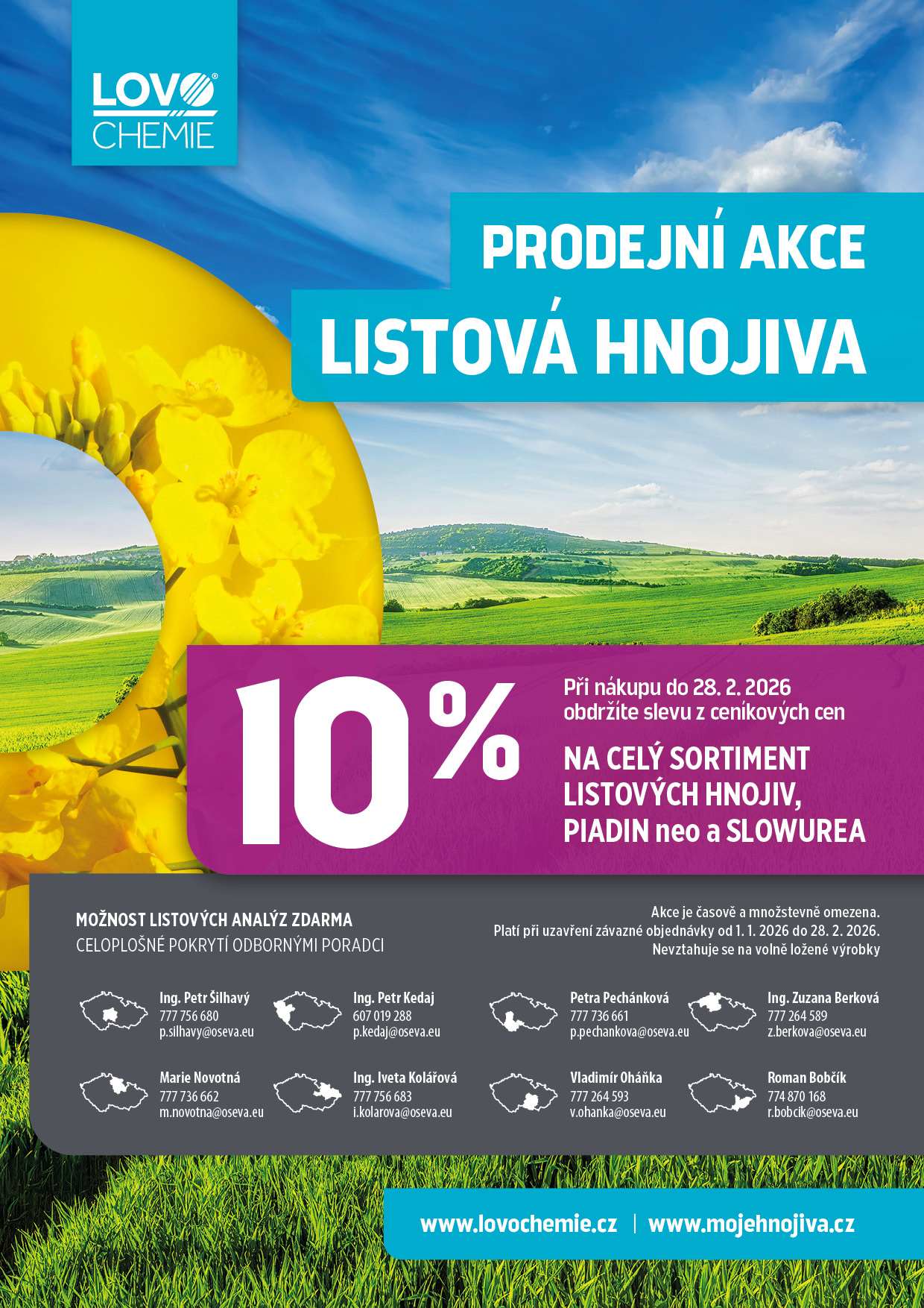 S novým rokem tradičně startuje prodejní akce na celý sortiment listových hnojiv z produkce Lovochemie + navíc se vztahuje na prodávané stabilizátory dusíku PIADIN neo (inhibitor nitrifikace) a SLOWUREA (inhibitor ureázy). Akce probíhá do 28.2.2026. Podrobnosti najdete v přiloženém letáku a také u poradenského týmu společnosti Oseva Bzenec.