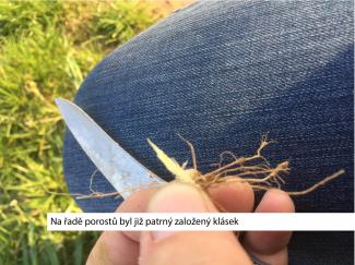 Ječmen ozimý – podle analýz rostlin i jejich vzhledu, se „zachoval“ dost podobně jako řepka. Vytvořil dost silných odnoží a často i dobrou kořenovou soustavu. I v něm většinou chybí fosfor a draslík, včetně výše uvedených tří stopových prvků. U obilnin jsou všechny tyto prvky ještě důležitější, než v prvopočátku kvetení u řepky, ovlivňují totiž vývoj a plodnost klásků. A právě vývoj klásků je v letošním roce velmi slabý. Na řezech dosahují velikosti kolem 4 až 7 mm. A u ječmene, který v této době má již pokročilou fázi BBCH 31 nebo i 32 (druhé kolénko 2 cm od prvého), to znamená výrazné časové zaostávání. Zejména u obilnin totiž je nutné využít jarní zásoby vody v půdě, spoléhat se na srážky je „příliš riskantní“. Proto jsou na tom daleko lépe tam, kde použili dodání PK hnojiva spolu se stopovými prvky a malou dávkou CCC již ve fázi začátku jarního růstu – tedy v období, kdy se středový list začal prodlužovat. U ozimého ječmene jsou na tom lépe ti, kteří provedli hnojení PK hnojivem již na podzim. Podle výsledků hodnocení porostů pro BASF, které provádíme spolu s Ing. Šindelkovou, mají takto ošetřené porosty ozimého ječmene velmi málo odumřelých starých listů a nedochází tak k šíření chorob past stébel, které jsou u hladových porostů běžné. I kořenová soustava takových porostů je mohutnější a dosud jsou živé i primární kořeny. Na ječmeni i pšenici se vyskytuje různě mohutné poškození středových listů odnoží bzunkou ječnou. Na některých lokalitách se její výskyt pohybuje na 10% odnoží. Insekticidně ji lze zvládat ale jenom na podzim!Je zajímavé, že ozimý ječmen má letos podstatně méně virových chorob než pšenice. Zato ve výskytu hnědých rzí na listech si s pšenicí nezadá – na obou druzích se rozvíjí velmi dobře. Na ječmeni je potřeba sledovat také rozvoj hnědé skvrnitosti listů. Je potřeba ošetřit ihned, jak je hnědá skvrnitost na porostu prokázána – pozdní aplikace ji už nezničí, pouze omezí její dopad. A právě s fungicidní ochranou v současné době je aplikaci mimokořenové výživy potřeba spojit.