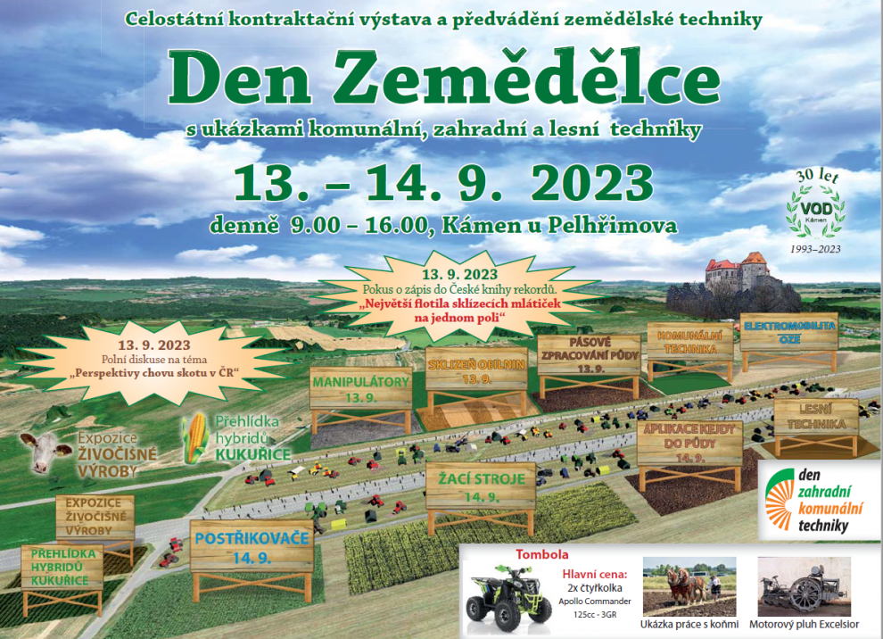 Den Zemědělce patří k tradičním podzimním vrcholům „polního výstavnictví“ – navštivte naši expozici a pojďte probrat nejen aktuální otázky rostlinné a živočišné výroby či problematiky snižování emisí v dopravě. Těšit se můžete na zástupce firem LOVOCHEMIE, DUSLO, OSEVA Bzenec, GREENCHEM či FARMTEC.